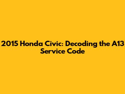 Alright, let's dive into what that A13 service code on your 2015 Honda Civic means, guys. Understanding these codes is super important for keeping your ride in tip-top shape and avoiding any unexpected breakdowns. We'll break it down in a way that's easy to understand, even if you're not a car guru. Think of it as a friendly guide to help you navigate the world of Honda maintenance. Knowing what the A13 code signifies will empower you to communicate effectively with your mechanic and make informed decisions about your car's care. After all, a well-maintained Civic is a happy Civic, and a happy Civic means a happy you! Let's get started and unravel the mystery behind the A13 service code.