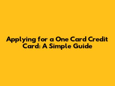 Applying For A One Card Credit Card: A Simple Guide