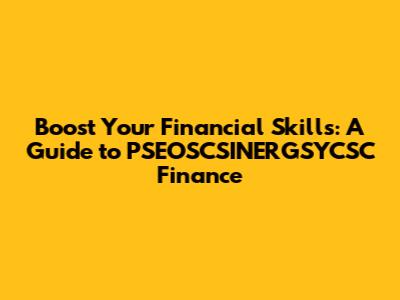 Boost Your Financial Skills: A Guide To PSEOSCSINERGSYCSC Finance