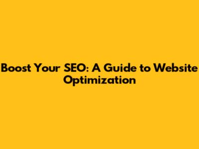 Boost Your SEO: A Guide To Website Optimization