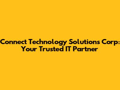 In conclusion, Connect Technology Solutions Corp stands out as a reliable and innovative IT partner dedicated to empowering businesses with cutting-edge technology solutions. Their commitment to understanding unique business needs, coupled with their broad spectrum of services, makes them an invaluable asset in today's digital landscape. Whether it's managed IT services, cloud solutions, cybersecurity, or custom software development, they offer the expertise and support needed to thrive. By partnering with them, businesses can focus on their core operations, secure in the knowledge that their IT infrastructure is in capable hands. Embracing Connect Technology Solutions Corp means investing in a future where technology drives growth, efficiency, and sustained success.