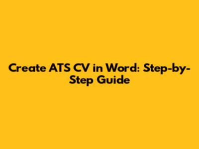 Create ATS CV In Word: Step-by-Step Guide