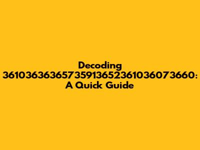 Decoding 36103636365735913652361036073660: A Quick Guide