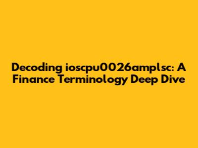 Ever stumbled upon a financial term that sounds like it's straight out of a sci-fi movie? Yeah, we've all been there. Today, we're diving deep into one of those mysterious phrases: ioscpu0026amplsc. If you've encountered this term and scratched your head wondering what it means, you're in the right place. This article will break down the components of ioscpu0026amplsc, explore its potential meanings in the finance world, and provide clarity to help you understand its usage. Finance can be intimidating, but with clear explanations and practical examples, even the most complex terms can become understandable. Whether you're a seasoned investor or just starting to learn about finance, this guide will offer valuable insights and demystify this obscure term. By the end of this article, you'll be able to confidently discuss ioscpu0026amplsc and its implications in financial contexts. Let's get started and unravel the mystery behind this unique phrase!