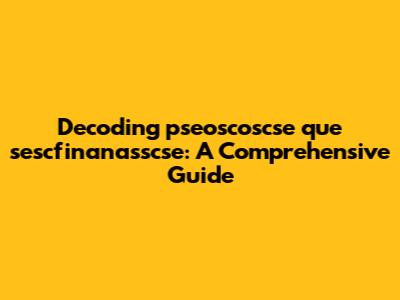 Decoding pseoscoscse Que Sescfinanasscse: A Guide