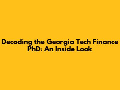 Decoding The Georgia Tech Finance PhD: An Inside Look