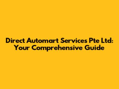 Hey guys! Ever wondered about Direct Automart Services Pte Ltd? Well, you've landed in the right spot. This guide will give you the lowdown on everything you need to know. We're diving deep into what they offer, why they matter, and how you can make the most of their services. So, buckle up and let's get started!