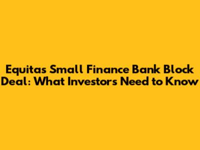 Equitas SFB Block Deal: What Investors Need To Know