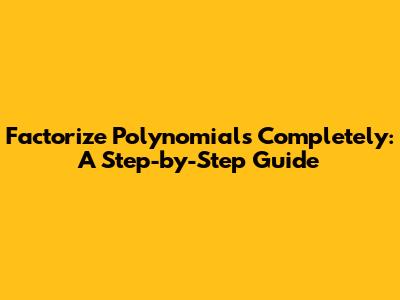 Factorize Polynomials Completely: A Step-by-Step Guide