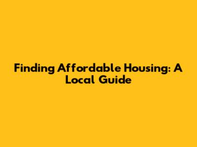 Finding Affordable Housing: A Local Guide