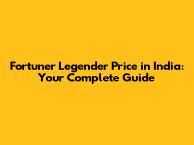 Fortuner Legender Price In India: Your Complete Guide