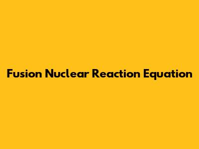 Fusion Nuclear Reaction Equation: A Simple Explanation
