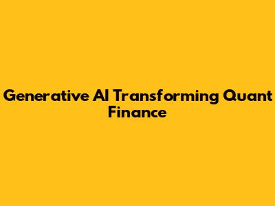 Generative AI Transforming Quant Finance