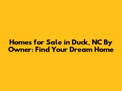 Are you dreaming of owning a beautiful home in the charming coastal town of Duck, North Carolina? If you're looking to cut out the middleman and potentially save some money, exploring homes for sale in Duck, NC by owner might be the perfect path for you. Duck, NC, is a stunning Outer Banks town known for its pristine beaches, quaint shops, and delicious restaurants. Buying directly from the owner can offer a more personalized experience and potentially a better deal. Let's dive into everything you need to know to navigate this exciting real estate journey!