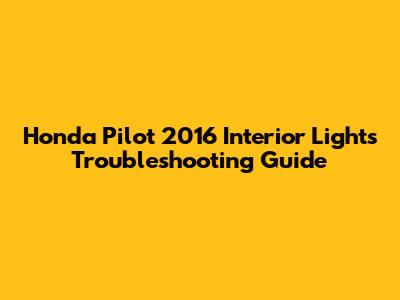 Honda Pilot 2016: Fix Interior Lights Issues
