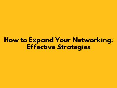 How To Expand Your Networking: Effective Strategies