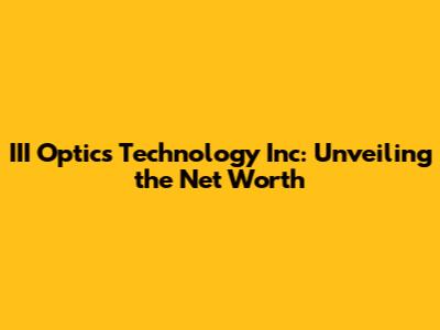 III Optics Technology Inc: Unveiling The Net Worth