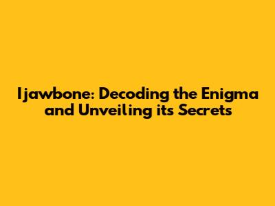 Unraveling the Mystery: What Exactly is Ijawbone?