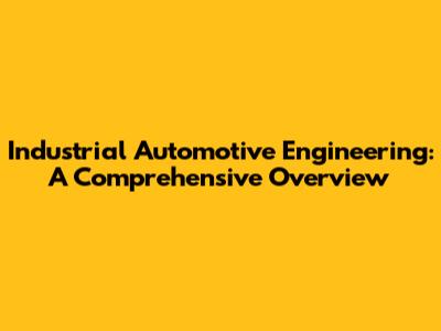 Industrial Automotive Engineering: A Comprehensive Overview