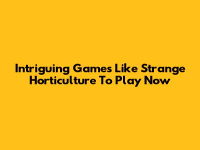 Intriguing Games Like Strange Horticulture To Play Now