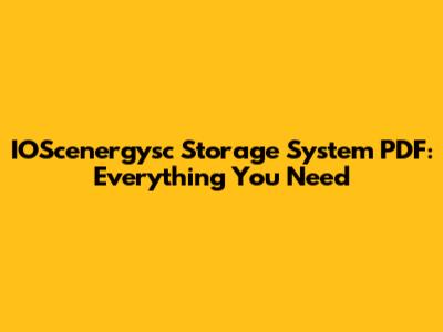 IOScenergysc Storage System PDF: Everything You Need