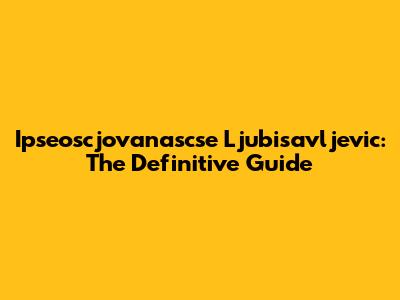 Ipseoscjovanascse Ljubisavljevic: The Definitive Guide