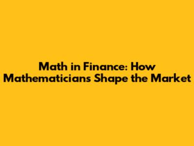 Math In Finance: How Mathematicians Shape The Market