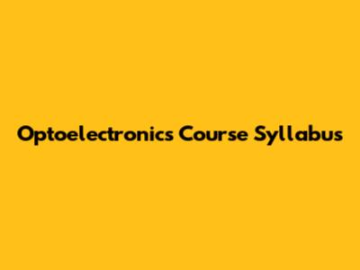 Optoelectronics Course Syllabus
