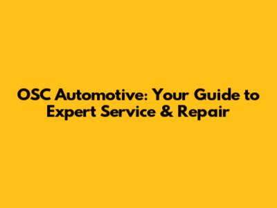 OSC Automotive: Your Guide To Expert Service & Repair