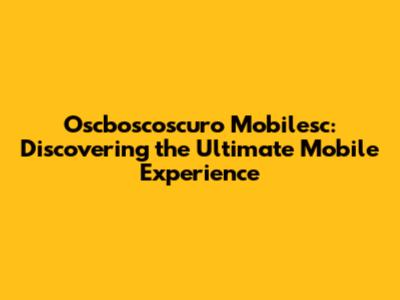 Oscboscoscuro Mobilesc: Discovering The Ultimate Mobile Experience