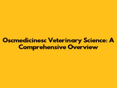 Oscmedicinesc Veterinary Science: A Comprehensive Overview