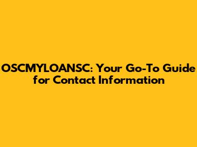 OSCMYLOANSC: Your Go-To Guide For Contact Information