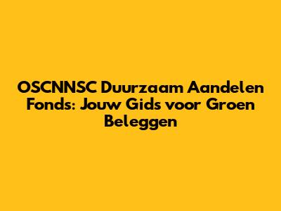 OSCNNSC Duurzaam Aandelen Fonds: Jouw Gids Voor Groen Beleggen
