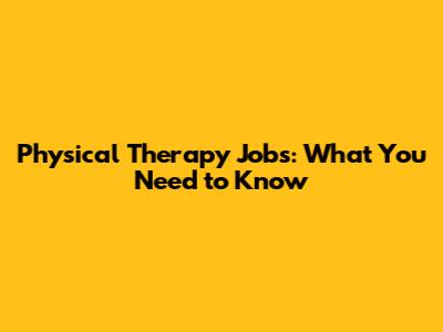Physical Therapy Jobs: What You Need To Know