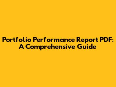 Portfolio Performance Report PDF: A Comprehensive Guide