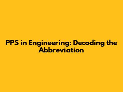 PPS In Engineering: Decoding The Abbreviation