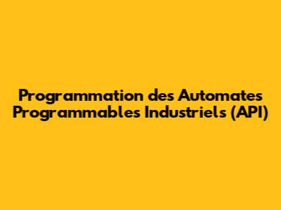 Programmation Des Automates Programmables Industriels (API)