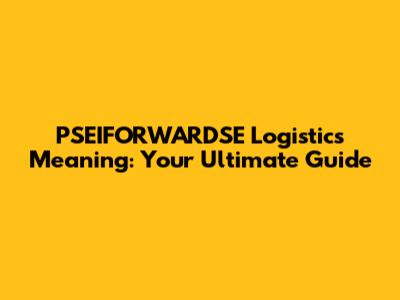 PSEIFORWARDSE Logistics Explained: Your Comprehensive Guide