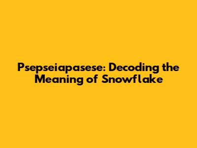 Psepseiapasese: Unveiling The Meaning Of Snowflake
