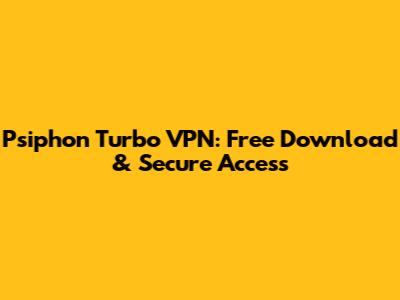 Psiphon Turbo VPN: Free Download & Secure Access