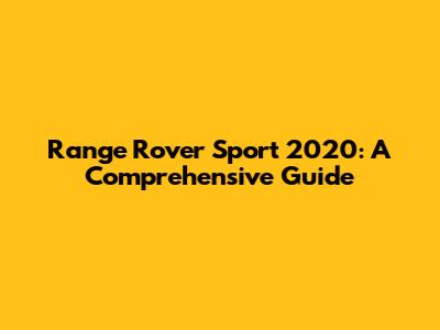 Range Rover Sport 2020: A Comprehensive Guide