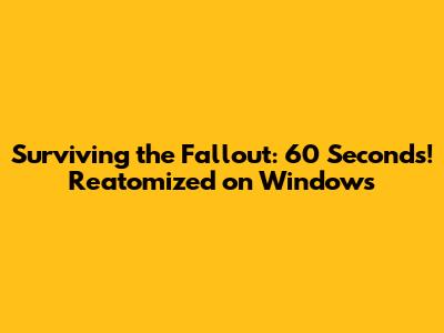 Absolutely! 60 Seconds! Reatomized is a fantastic game that offers a unique and engaging survival experience. With its blend of strategic gameplay, dark humor, and high replayability, it's a game you'll keep coming back to. So, if you're looking for a fun and challenging game to play on your Windows PC, be sure to check out 60 Seconds! Reatomized. You can find it on Steam and other platforms. Just remember to download it from a safe and trusted source. And most importantly, have fun surviving the apocalypse! Good luck, and may your family survive the fallout!