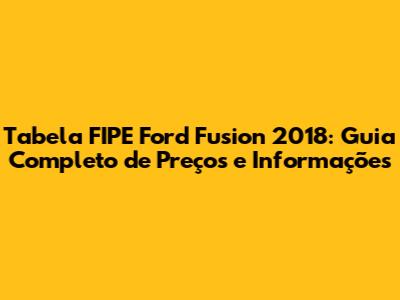 Como consultar a Tabela FIPE do Ford Fusion 2018?