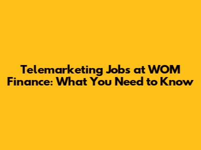 Telemarketing Jobs At WOM Finance: What You Need To Know