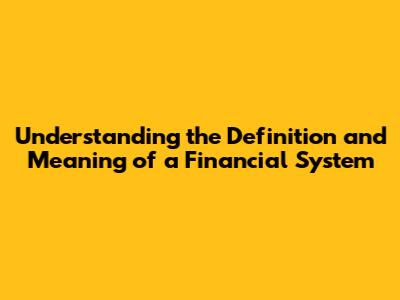 Understanding The Definition And Meaning Of A Financial System
