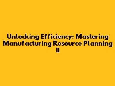 Unlocking Efficiency: Mastering Manufacturing Resource Planning II