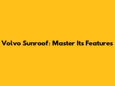 Volvo Sunroof: Master Its Features